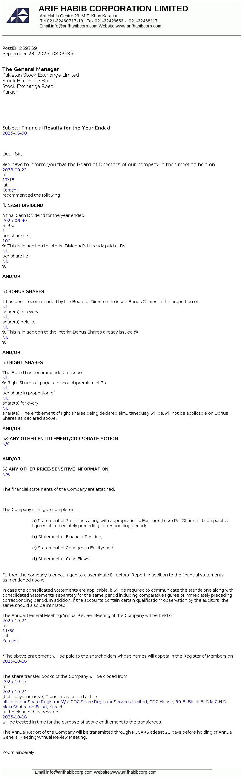 Latest Dividend